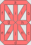 Un afficheur à 7 segments ne permettant d'afficher que les 16 "chiffres" utilisés pour un codage hexadécimal, on a développé des afficheurs à 14 segments qui offrent la possibilité de représenter l'alphabet :
